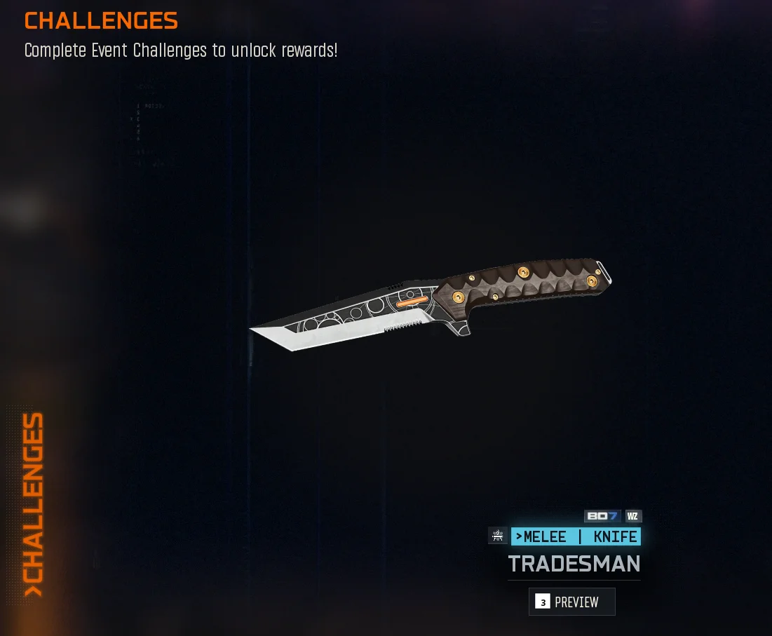Earning 7,500 Points over the duration of the event unlocks the 'Trademan' Blueprint for the Knife